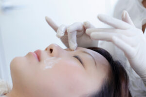 ケミカルピーリングとは酸など皮膚に障害を与える薬剤を使って、皮膚の角質や表皮、さらには真皮までをも化学的に溶かして、新しい皮膚の再生を促す方法です。