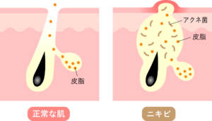 毛を取り囲んでいる組織には皮脂腺がセットになって存在しており、アクネ菌という菌が常在しています。