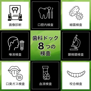 歯科ドック口腔内を多角的・科学的に検査、分析をして、口腔内の状態とリスクを総合的に判断します。一般的な歯科健診のような、主観的な視診(歯科医師が口腔内やレントゲンを見て判断)と違い客観的・科学的な検査を行います。 ![]() |